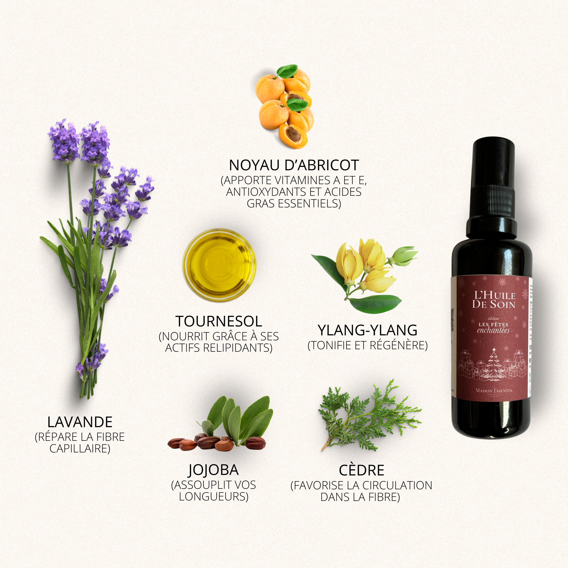 Pour cette fin d'année 2025, nous avons voulu retrouver la magie de Noël et des Fêtes en imaginant une version exclusive de l'Huile de Soin.